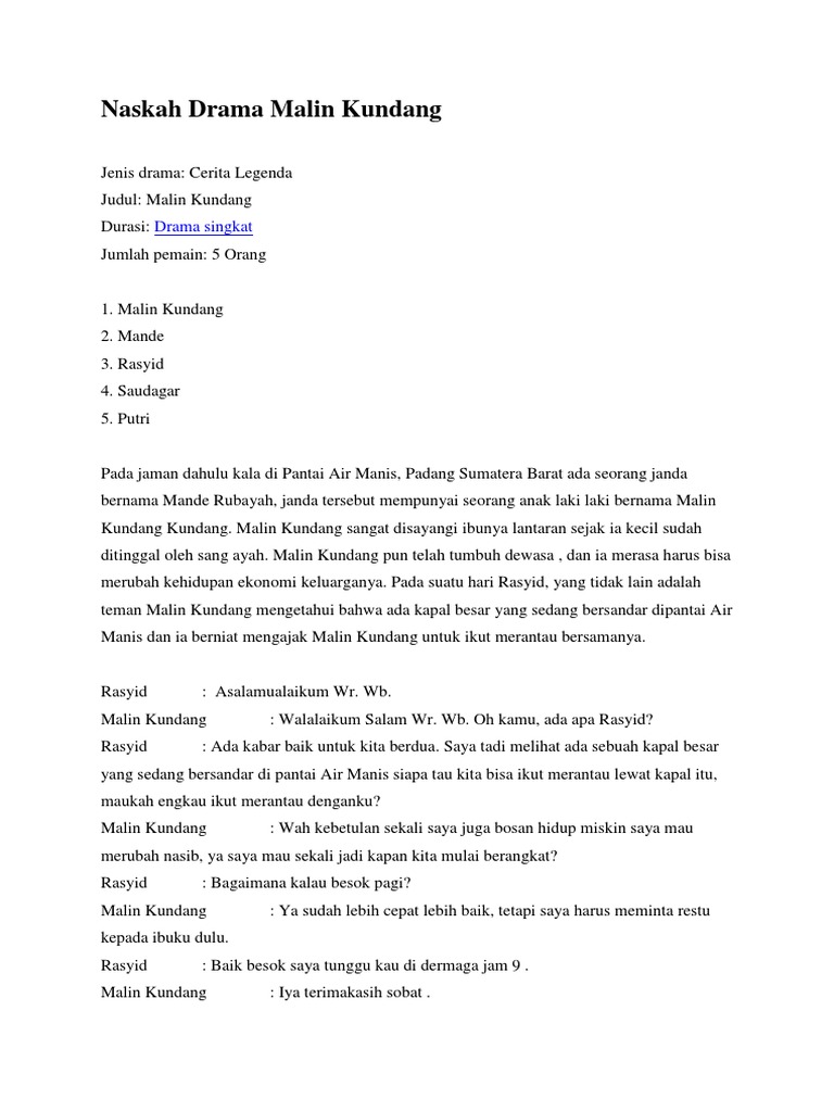 Cerita Malin Kundang Dalam Bahasa Inggris Singkat Dan Artinya 34m7yx8x1846 from idoc.pub Rakyat cerita malin kundang singkat pendek. Check spelling or type a new query. Maybe you would like to learn more about one of these? We did not find results for: